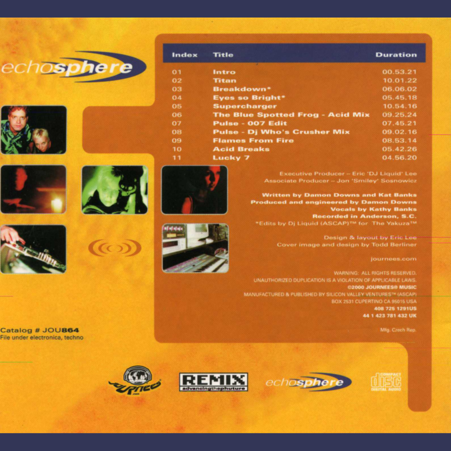 This album sets the pace, straight out of the gates, launching into Titan, a floor-filling stomper (next single JOU-010) with bass to move mountains. Dj Liquid's edit of Breakdown is an incredible showcase of SE scratchmasters compliments of Dj Scientist (Yin Yang Twins). Eyes so Bright is a beautiful but large, catchy funky vocal track. Supercharger releases that down and dirty funky acid. Blue Spotted Frog helps fuel that craving of acidic funky techno still. The immensely popular underground anthem, Pulse fills the next moments beautifully with Kat Bank's sweeping and uplifting vocals, while still keeping that edge. Flames from Fire is a catchy track with basslines that are guaranteed to get you groovin'. Acid Breaks gives one last helping of that ElectroAcidFunk and Lucky 7 helps the listener come back down pleasantly. An incredible and extraordinary journey. Many songs are already standouts the rest just need some time.